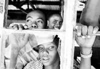 Estudiantes de primaria de Kenya observan desde su escuela la llegada de una delegación de Suiza a su poblado situado a 56 kilómetros de Nairobi. Miles de altermundistas se congregan en este país africano para participar en el séptimo Foro Social Mundial. Las actividades coordinadas por el foro responden a la actualidad del continente africano: lucha contra el sida, peso de la deuda, soberanía alimentaria, necesidad de acuerdos de comercio justos, modos de vida alternativos para los jóvenes, empleos que respeten la dignidad de la persona, entre otros asuntos