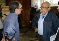 Ignacio García, vocero de la Comisión Civil Internacional de Observación de los Derechos Humanos, y el escritor Carlos Monsiváis, en el contexto de la presentación de conclusiones y recomendaciones en torno al conflicto en Oaxaca * Roberto García Ortiz