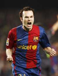 Andrés Iniesta celebra uno de los goles que dieron la victoria al Barcelona 3-0 sobre Gimnástic de Tarragona