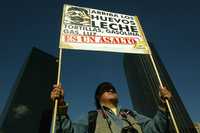 Ampliar la imagen Manifestante en la marcha por la defensa de la soberanía alimentaria y el empleo y en contra de la inflación, del Angel de la Independencia al Zócalo, efectuada ayer Foto: José Carlo González