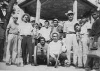 Grupo de obreros en el kiosco de La Fama Montañesa