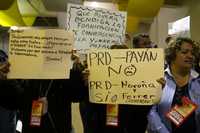 Durante el cónclave perredista un grupo hizo patente su inconformidad con la candidatura de Ana Rosa Payán
