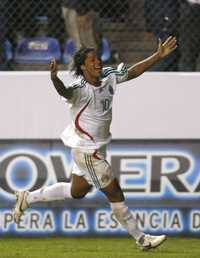 Giovanni dos Santos festeja la anotación que selló el triunfo del equipo mexicano
