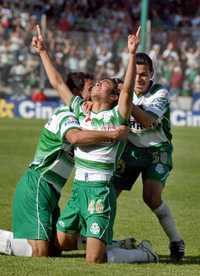 Ampliar la imagen Agustín Herrera festeja el tanto que dio el ansiado triunfo a Santos Foto: Notimex
