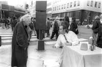 En esas escenas se ve a Pancho López instalando una mesa con mantel de cuadros rojos y blancos, y un florero, ante la mirada curiosa de los transeúntes. Luego, López come de un plato elegante, con cubiertos de plata y servilleta de tela al lado mientras intercambia palabras con algunos paseantes.