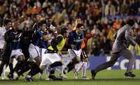 Valencia, 6 de marzo. Mientras el Barcelona, defensor del título, fue eliminado por el Liverpool inglés, el Valencia hizo lo propio con el Inter de Milán, en un partido que terminó en una batalla campal entre los jugadores.