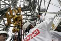 Vista de una plataforma de perforación construida para Vietnam, terminada en Singapur con dos meses de anticipación, el jueves pasado