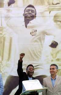 Luego de un retraso de hora y media, Pelé se dirigió al público en el club Lomas Verdes