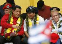 La Paz, 10 de marzo. Una convocatoria antimperialista, un llamado a los pueblos de América Latina para continuar la lucha por su liberación, así como para la construcción de la "patria grande" latinoamericana, hizo hoy el presidente venezolano, Hugo Chávez, durante una ceremonia realizada en el aeropuerto de Trinidad, capital del Departamento de Beni, en la que entregó ayuda por unos 15 millones de dólares a los damnificados por las inundaciones.
