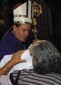 El cardenal Norberto Rivera Carrera saluda a los asistentes a la misa dominical celebrada en la Catedral Metropolitana