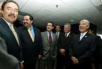 Los legisladores Emilio Gamboa, Héctor Larios, Diódoro Carrasco y Jorge Zermeño acompañan al titular de la Secretaría de Gobernación, Francisco Ramírez Acuña, quien ayer compareció ante comisiones de la Cámara de Diputados