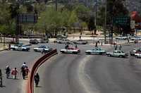Oaxaca, Oax., 26 de marzo. Cientos de taxistas bloquearon esta mañanalos accesos y principales cruceros de la ciudad para demandar al gobierno de Oaxaca que retire las unidades piratas y revoque las concesiones ''falsas'' supuestamente firmadas por el anterior gobernador, José Murat Casab.