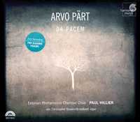 Es el caso del compacto titulado Da Pacem (harmonia mundi), donde el que es sin duda el mejor coro especializado en el planeta, el Estonian Philharmonic Chamber Choir, dirigido por el maestrísimo Paul Hillier, pone en vida partituras recientes del estoniano y las conjuga con otras gemas de su catálogo para conjuntar un disco exquisito de ''motetes", como tiene a bien bautizar a estas obras Hillier, a la par estupendo musicólogo, en las notas al programa de pierna (porque es ahí, y no en la mano, donde reposa el cuadernillo mientras el escucha cierra los ojos y enciende el aparato reproductor (je).