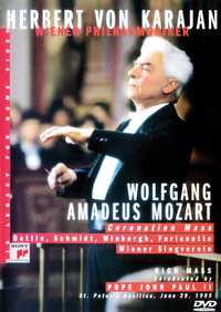 Y hablando de Mozart, la más reciente novedad mozartianísima ya está en los anaqueles. Se trata de un filme histórico: la grabación, realizada el 29 de junio de 1985 en la Basílica de San Pedro, en el Vaticano, de una de las últimas grabaciones de Herbert von Karajan: la Misa de Coronación, de Wolfgang Amadeus Mozart, en vivo y por primera vez desde que se estrenó, unos 200 años antes, en una celebración litúrgica, en esta ocasión oficiada por Juan Pablo II.
