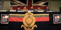 Seis de los 15 marinos británicos liberados por Irán hablan durante una rueda de prensa en la base de Chevinor, suroeste de Inglaterra
