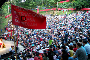 –¿Que efecto crees que pueda tener este reconocimiento en la voluntad de diálogo, de pacto político, de búsquedas inteligentes y sensibles para una situación que fragmenta a tu país y alarga el desangramiento de la población? –El reconocimiento del Premio Nobel Alternativo de la Paz 2006 al Festival Internacional de Poesía de Medellín, por el momento no va a tener ningún efecto en la voluntad de diálogo entre los ejércitos enfrentados en Colombia. Con muy leves excepciones, los medios de comunicación de nuestro país no informaron absolutamente nada sobre la entrega del Premio Nobel Alternativo, en el Parlamento Sueco, a nuestra organización. Esto habla de la comprobada deliberación de la inmensa mayoría de los medios de comunicación colombianos en desconocer la existencia del Festival Internacional de Poesía de Medellín, un enorme medio de comunicación en sí mismo, sencillamente porque no es manipulable ni susceptible de soborno o compraventa. –¿Cómo nació y se acrisoló la idea y la posibilidad real de montar sobre una situación tan cruenta un acto cultural que involucra, no sé si al inicio, pero hoy sí, a cientos y miles de habitantes de Medellín? –Si Ciudad de México viviera una situación de guerra y estallasen bombas y carros-bombas en sus calles, ¿huirías? ¿Vivirías escondido cada día? Si en tu país la masacre y el genocidio político fueran la constante cotidiana, ¿qué camino tomarías? Bueno, pues nosotros en esas circunstancias fundamos el Festival Internacional de Poesía de Medellín, para oponer la belleza al terror, para enfrentar la poesía a la muerte violenta. En el momento adecuado nosotros interpretamos el amor por la poesía y la voluntad de vida de miles de personas. Entonces decidimos continuar y acrecer año tras año en todos los planos esta propuesta que rompe rígidos esquemas políticos y avinagrados esquemas poéticos.