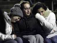 Estudiantes de la Universidad Virginia Tech lloran después de un servicio en la capilla War Memorial, cerca del edificio Norris, donde ocurrió uno de los tiroteos el día de ayer