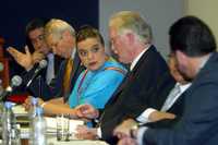 La presidenta nacional del PRI, Beatriz Paredes (al centro), durante los foros de consulta sobre gobernabilidad democrática en la Secretaría de Gobernación