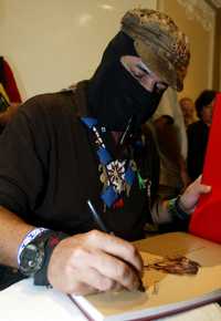 El subcomandante Marcos dedicó ejemplares de su libro a los asistentes al acto