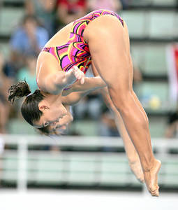 Paola Espinosa y Laura Sánchez conquistaron ayer el primer lugar en la categoría de trampolín de 3 metros sincronizados, en la Universiada Mundial de Bangkok FOTO Conade