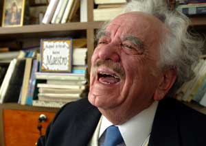 Un deuda con AguascalientesEste año, patrocinado por el Instituto Nacional de Bellas Artes y el Instituto de Cultura de Aguascalientes, se creó el Premio de Poetas del Mundo Latino Victor Sandoval. El premio se da por trayectoria a un poeta mexicano y a un poeta de país de raíz latina. En este 2007, el premio fue otorgado al mexicano Rubén Bonifaz Nuño y al colombiano Juan Manuel Roca. El premio se entregará en octubre en la ciudad de Aguascalientes, que es una de las dos ciudades donde hay extensiones del Encuentro central que se realiza en Morelia. La obra de Bonifaz es de dimensiones impresionantes: gran poeta, el hombre que más ha traducido a los griegos y latinos en el mundo, director de la admirable Biblioteca Scriptorum Graecorum et Romanorum Mexicana, polémico y original prehispanista, maestro formador de generaciones y minucioso editor universitario. Desde los veintidós años, Bonifaz Nuño estuvo muy cerca de la ciudad de Aguascalientes como participante de los concursos florales, los cuales ganó cuatro veces. Con reconocimiento conmovedor, Bonfiaz explica en esta entrevista qué fue Aguascalientes para él .   Primero que nada quisiera decir que estoy muy agradecido con Aguascalientes, porque yo estaba lleno de dudas sobre mis posibilidades literarias, y en esa ciudad se empeñaron en demostrarme que yo era un buen escritor.