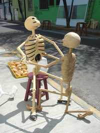Los mexicanos juegan, ríen y sufren con la muerte, pero además, el colectivo Los Olvidados atribuye un sentido social a ésta, la cual es representada por este grupo dedicado al arte de la cartonería, con creaciones hechas en el barrio con esqueletos humanos, para denunciar la pobreza y la injusticia en México.