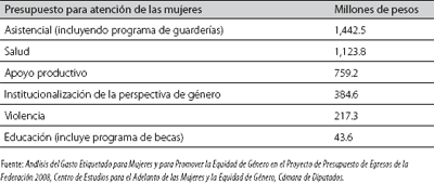 INVERSIÓN EN MUJERES PARA 2008 El presupuesto disperso |