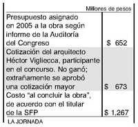 Recibo un mensaje de Moisés Ciriaco Salvador, director de Información de la Secretaría de la Función Pública, en el que precisa que el titular de esta dependencia, Salvador Vega Casillas, al rendir un informe sobre la Biblioteca José Vasconcelos a la Comisión de Cultura del Senado que preside María Rojo, comentó: “El presupuesto original autorizado para la construcción de la obra fue de mil 207 millones de pesos; finalizando, al concluir la obra, o en el proceso que está, en mil 267 millones de pesos. Este 4.9 por ciento de incremento obedece principalmente a la atención de los daños de la inundación y a obras adicionales no contempladas en el proyecto original”. La aclaración viene a crear mas confusión: seguramente los reporteros de El Universal, Milenio, El Financiero, etcétera, escucharon o leyeron mal el dato que apareció publicado en sus respectivos medios, así como en esta sección, ya que coincidimos en que dijo que el presupuesto original fue de 207 millones. Pudo ser un desliz verbal del funcionario, en medio del alboroto que armó el senador Ricardo Monreal, pero eso no es esencial. Lo importante es que el gobierno calderonista, tratando de desafanar al foxista, sigue tratando de esconder lo inocultable: entre el costo calculado inicialmente y el costo final hay una diferencia muy sospechosa: (ver gráfica arriba)