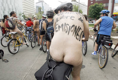 Cientos de ciclistas circularon sin ropa por el Paseo de la Reforma, como parte de las actividades de la Marcha Mundial Ciclistas al Desnudo, que se llevaron a cabo en 132 ciudades de diferentes países Foto Víctor Camacho