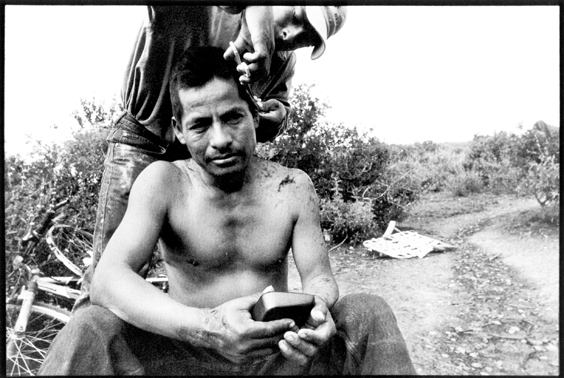 Trabajador agrícola mixteco en las colinas de Delmar, cerca de San Diego, California
