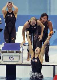 Festejo de las ondinas holandesas, quienes se impusieron a estadunidenses y australianas