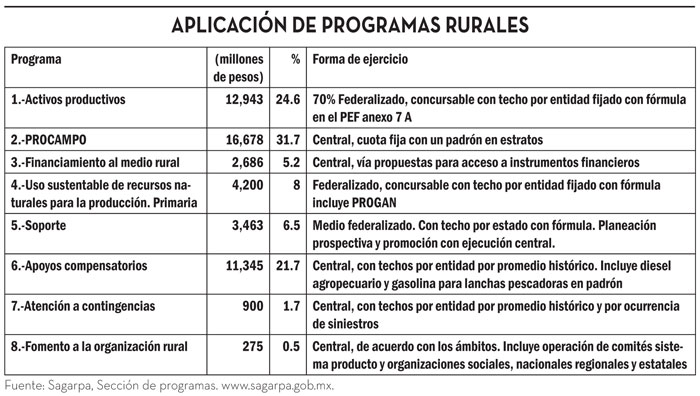 Jorge Romero * y Felipe Varela ** Desde su creación en 2002, el Programa Especial Concurrente para el Desarrollo Rural Sustentable (PEC) ha representado la base de la estrategia intersecretarial de la administración pública federal para el apoyo al campo. El programa surge de la Ley de Desarrollo Rural Sustentable, producto de un amplio movimiento para impulsar reformas en el sector en 2001. La Ley define al PEC como “un conjunto de programas sectoriales relacionados con las materias motivo de la Ley de Desarrollo Rural Sustentable” (Artículo 3). Definido tan ampliamente, en el PEC cabe prácticamente cualquier actividad, y pierde sentido como instrumento para valorar la estrategia de apoyo al campo y sus resultados. Al caber todo en él, el PEC se difumina. Deja de ser útil para apuntalar y desarrollar estratégicamente el sector. Falta claridad. El PEC se oficializó en 2002 y en 2004 por fin aparece un anexo del presupuesto en el que se incorporan detalles. Un análisis de las condiciones de integración y ejercicio del instrumento arroja resultados que no son sorprendentes, pero sí graves: hay un amplio margen de discrecionalidad en el ejercicio; hay variaciones importantes durante el año; no se evalúan los resultados e impacto de los componentes, ni en términos globales ni por vertiente de actividad, y una buena parte de las actividades contempladas no se justifica cabalmente como apoyo al sector. La heterogeneidad en la composición del PEC es de tal magnitud que la Organización para la Cooperación y el Desarrollo Económico (OCDE), sin dejar de reconocer el “esfuerzo” del gobierno mexicano para diseñar una política federal integral para el desarrollo rural de México, también ha reconocido en el PEC una suerte de inventario de programas más que una herramienta para desarrollar o aprovechar sinergias entre ellos, y el resultado es una distorsión de la realidad de la política sectorial (Imagen Agropecuaria, “El PEC para el agro mexicano, inventario de programas: OCDE”, 18 de julio de 2007). El principal problema de esta dispersión –además de que no está ampliamente justificada en los documentos presupuestarios, lo cual implica opacidad– es que genera ineficacia. No se han concretado los resultados esperados, y el instrumento no permite una conducción estratégica de las acciones del sector. Por si esto fuera poco, la información presupuestaria oficial no es oportuna y no incorpora detalles fundamentales para valorar las variaciones en programas y sus resultados. Ajustes sólo de forma. Para enfrentar esta excesiva dispersión, en 2008 el gobierno federal trató de acotar el margen de acción de los programas y actividades contempladas. Como resultado, el PEC 2008 establece nueve vertientes, mientras que en 2007 no se consideraba la vertiente del ejercicio presupuestario; considera 47 programas, contra más de cien en 2007, y 97 componentes o actividades, contra más de 300 en 2007. Este esfuerzo de reclasificación, sin embargo, es meramente simbólico. Ni se han enfocado los esfuerzos del sector ni se ha generado información detallada que explique el impacto de algunas actividades. Un ejemplo está en los programas de la Secretaría de Relaciones Exteriores que son parte del PEC, y que incluyen apoyo para la repatriación de cadáveres, apoyo a migrantes en situación de maltrato y defensa de condenados a muerte, entre otras. El monto asignado a este conjunto de programas fue 70 millones de 2008 (50 por ciento menos que en 2004). Sin ser montos relativamente altos, no deja de ser significativo que los recursos no se destinen directamente a apoyos al campo ni encajen en las vertientes señaladas por el Ejecutivo. Confusión. Otro ejemplo es el relacionado con el programa social Oportunidades que en 2008 aporta un monto total de 31 mil millones de pesos al PEC. Los apoyos de Oportunidades no son en estricto sentido parte de la estrategia sectorial, y al incorporarlos en el instrumento no se cuenta con una perspectiva clara del diseño, justificación e impacto de las políticas. En consecuencia, el PEC se mantiene como un gran catálogo en el que todo cabe, pero en el que no se da cuenta puntual de por qué, para qué, y cuáles son los resultados, es decir, cómo se afecta, para bien o para mal, el desarrollo rural. Estos recursos importan, por supuesto, y se debe dar cuenta de ellos. Pero como parte de la política sectorial correspondiente, no como parte de la estrategia de desarrollo rural. La consecuencia de su incorporación es que se pierde dirección sobre los esfuerzos de desarrollo rural, y se difumina su impacto. A estos ejemplos de la dispersión del PEC y su carácter nominativo más que estratégico, se suman otros problemas más directamente relacionados con la opacidad que habilita esta dispersión. Al depender de una comisión intersecretarial ad hoc , se difumina la responsabilidad por el ejercicio del gasto, y se hace más difícil el monitoreo puntual de los recursos, ya que los instrumentos de información del gobierno no incorporan la información necesaria. El resultado es una política de desarrollo sin ton ni son. * Director ejecutivo de FUNDAR jorge@fundar.org.mx ** Asistente de investigación en el área de transparencia y rendición de cuentas FUNDAR felipe@fundar.org.mx