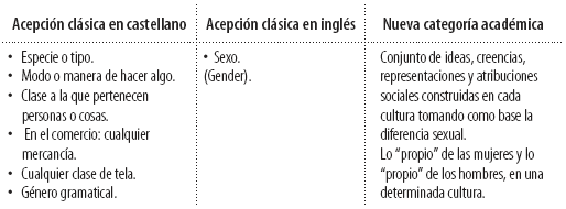 como traducción de gender, olvidando que la acepción clásica anglosajona de gender es