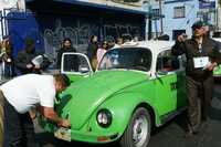 Personal de la Secretaría de Transportes y Vialidad puso en marcha ayer un operativo de verificación permanente para detectar unidades piratas o en mal estado. En esta imagen, servidores cotejan la documentación de un taxista en la Calzada de Tlalpan, a la altura de la estación Villa de Cortés del Metro