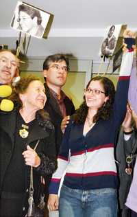 Lucía Morett al llegar a México. Le acompaña Rosario Ibarra
