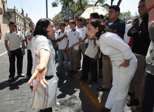Grupos pro católicos que apoyan la reforma antiaborto aprobada ayer y organizaciones defensoras de los derechos de las mujeres discutieron fuera del Congreso de Jalisco Foto Héctor Jesús Hernández / La Jornada Jalisco