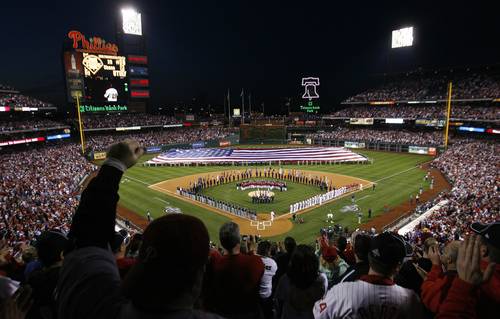 Vista panorámica del campo del estadio Citizens Bank, en Filadelfia, antes del comienzo del encuentro inaugural de la temporada del Beisbol de las Grandes Ligas, disputado entre los Bravos de Atlanta y los Filis de Filadelfia. Los Bravos superaron a los Filis a domicilio 4-1, gracias al estupendo trabajo del lanzador Derek Lowe