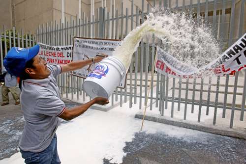 Alvaro González, dirigente de los lecheros, afirmó que el sector “vive su momento más dramático en la historia de la producción de México, derivado de torpezas y pésimas políticas de nuestros funcionarios y representantes, quienes han permitido desmedidas importaciones de productos subsidiados y de dudosa calidad”.
