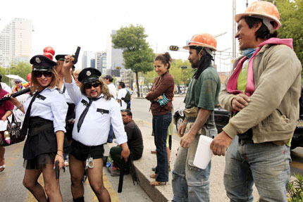 La lluvia no logró impedir que miles de personas marcharan del Ángel de la Independencia al Zócalo capitalino en defensa de la diversidad sexual. Cinco horas bastaron para que las calles de Reforma se convirtieran en un carnaval y un foro en el que las organizaciones lésbico gays hicieran públicas sus demandas sociales Foto María Luisa Severiano