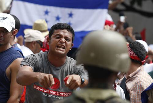 La marcha avanza al ritmo de un sonsonete que Zelaya utilizaba para sus giras como presidente: “Levantemos las banderas rojo y blanco…”, dice, en referencia a los colores del Partido Liberal, al que pertenece el presidente. El fin de semana un sector de los manifestantes portaba esas banderas, pero quienes han mantenido la resistencia en las calles de Tegucigalpa más bien se arman de banderas rojas y rojinegras. Andan aquí con sus mantas y camisetas los sindicatos magisteriales, que rechazan el reinicio de clases “hasta en tanto no se restituya el orden constitucional”. Otra fuerza importante son las organizaciones agrupadas en Vía Campesina, además de otros sindicatos de empleados públicos, feministas, católicos y evangélicos que se rebelan a sus pastores, indígenas y militantes zelayistas del Partido Liberal que juran no votar por el candidato de su partido, Elvin Santos, “porque es golpista”.