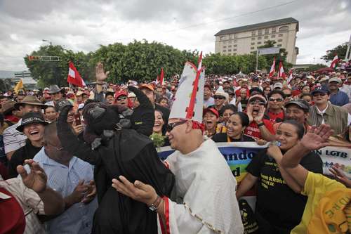 Los líderes de la resistencia ofrecen una rueda de prensa en medio de la multitud que espera a los marchistas del interior del país. Expresan, de entrada, su “repudio a las tácticas dilatorias” del gobierno de facto, que en maniobra dominguera logró que la misión de cancilleres de la Organización de Estados Americanos (OEA) pospusiera su vista hasta finales de la próxima semana. “Fue una artimaña para que los cancilleres no vieran al pueblo movilizado”, dice el dirigente sindical Israel Salinas.