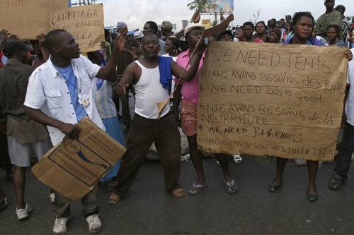 Miles protestan frente al destruido Palacio Nacional y acusan al presidente René Préval de incapaz