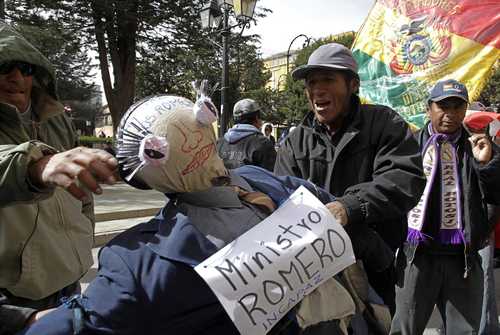 Antes del retorno del Comcipo a Sucre, en rueda de prensa el ministro de Autonomías, Carlos Romero, que desde ayer está en esa ciudad con sus homólogos de la Presidencia, Oscar Coca, y de Minería, José Pimentel, para buscar una solución al conflicto, afirmó que el Comcipo había “huido” del escenario de diálogo siguiendo una estrategia “de confrontación. Se está buscando confrontar a los departamentos de Oruro y Potosí”, como se intentó en 2006, afirmó.