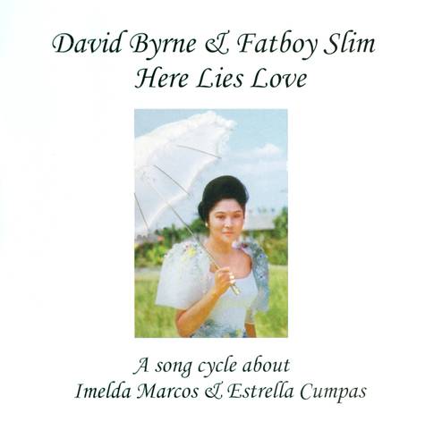 La primera respuesta está en una etiqueta pegada al celofán transparente sobre la foto desnuda: “David Byrne & Fatboy Slim. Here Lies Love. A song cycle about Imelda Marcos & Estrella Cumpas”.