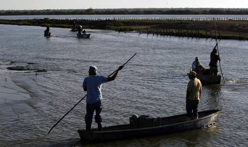 La temporada de captura de camarón casi concluyó, pero aún hay pangas que por la tarde salen a navegar, con su cachimba –lámpara artesanal– y sus atarrayas, por las lagunas para obtener aunque sea dos decenas de kilos.