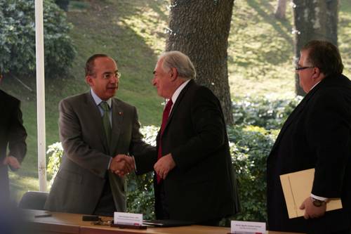 Strauss-Kahn comentó ayer que el FMI pondrá a disposición del gobierno mexicano la línea de crédito flexible “sin pedir nada a cambio”. El modelo de financiamiento reconoce que el país que lo recibe “tiene una política económica correcta y reconocemos que ustedes se están desempeñando bien”. Agregó: “Les estamos dando este crédito para un apoyo, para ciertas circunstancias. Espero que no lo utilicen, pero que esté ahí esta reserva. Es un préstamo que se otorga para los miembros platino, que tienen gran desempeño y es muy importante este estatus entre toda la comunidad internacional”.