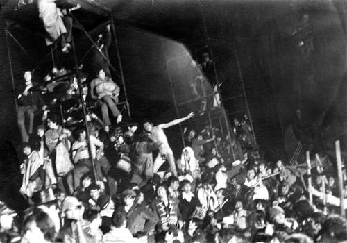 Para quienes estaban a más de la mitad del lugar del escenario, Armando Nava parecía una marioneta vestida de verde eléctrico que se movía sin cesar: eran los Dug Dug’s que inauguraban el concierto. La llovizna tampoco amainó durante la presentación de Epílogo y de la División del Norte. Cuando subió Tequila, con Marisela Durazo al frente, el personal rocanrolero se prendió. Ya casi a medianoche apareció Peace & Love, banda que había colocado entre el personal rolas como Memorias para los pirados, Tenemos el poder y un arreglo a Hully Gully, de los Beach Boys, con una letra que decía en el estribillo: “Mari, mariguana, mari, mariguna...” Antes de tocar esta última, Ricardo Ochoa dijo: “... Chin chin el que no cante”, y cuando un buen la coreaba, algunos juran que el cantante agregó enfático: “Chingue a su madre el que no cante”. Lo cierto es que letra y arenga tuvieron el poder de cortar la transmisión que se hacía para Radio Juventud y desaparecer lo filmado.