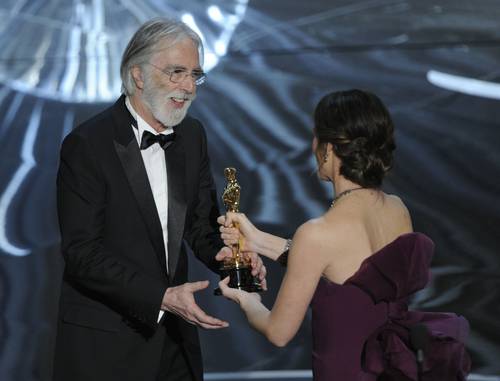 La producción austriaca Amor, de Michael Haneke, ganó hoy como estaba previsto la estatuilla a la mejor película de habla no inglesa, premio al que también optaba la cinta chilena No, de Pablo Larraín, protagonizada por el mexicano Gael García Bernal. Amor se impuso también a la danesa A royal affair, la noruega Kon-Tiki y la canadiense War witch. “Gracias a mi gran equipo, a mi mujer, que lleva 30 años siendo mi asistente y el centro de mi vida”, dijo Haneke al recoger la estatuilla, que también dedicó a la pareja protagonista de la película, los franceses Emmanuelle Riva y Jean-Louis Trintignant.