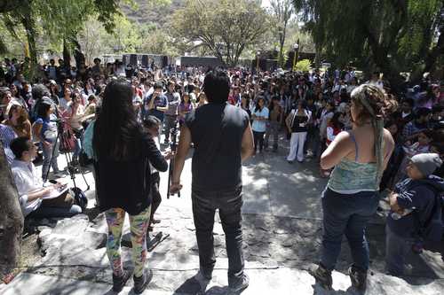 Al término del acto de los funcionarios, un grupo de activistas llamó a la comunidad estudiantil a mantenerse informada sobre la actualización de los planes de estudio y convocó a participar este jueves en una marcha del CCH Sur a la torre de rectoría a las cuatro de la tarde, para denunciar que en el proceso de revisión no se ha tomado en cuenta a los estudiantes.