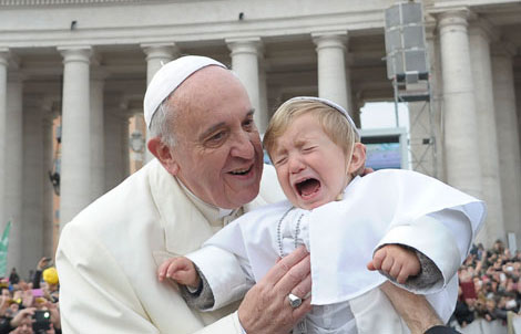 Daniele de Sanctis, de 19 meses, lloró cuando el papa Francisco lo alzó para darle un beso. El pequeño fue llevado por su madre a la audiencia general en la plaza de San Pedro, vestido con la misma indumentaria del pontífice. En otro orden, el reverendo Gustavo Gutiérrez, el fundador de la Teología de la Liberación, la corriente clerical latinoamericana que defiende a los pobres, fue el orador sorpresa en el Vaticano durante la presentación de un libro. El otrora relegado movimiento recibe ahora el beneplácito del actual jefe de la Iglesia católica Foto Reuters